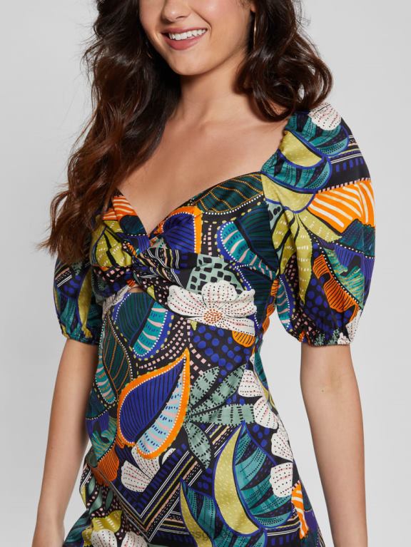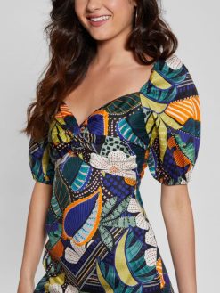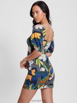 GUESS γυναίκες φουσκωμένο φόρεμα με εμπριμέ marisol τροπικός ταξιδιώτης ενδύματα J46DJ335
