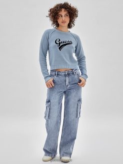 GUESS γυναίκες αυθεντικό πουλόβερ με οικολογικό λογότυπο μπλε βαμβάκι ενδύματα J46DJ1267