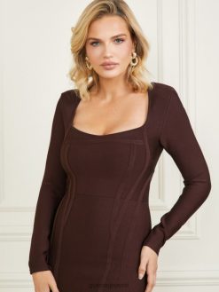 GUESS γυναίκες φόρεμα με επίδεσμο kagan σκούρο μπέρμπον ενδύματα J46DJ642
