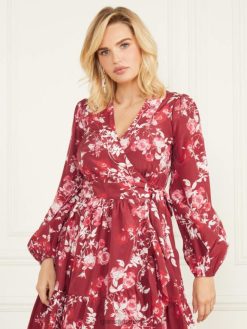 GUESS γυναίκες φόρεμα με πέταλο πόζα πέταλο πόζα σκούρο κόκκινο μαρμελάδα ενδύματα J46DJ691