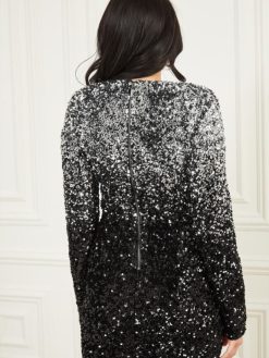 GUESS γυναίκες Φόρεμα με παγιέτες με λάμψη σαν διαμάντια τζετ μαύρη απόχρωση πλατίνα ενδύματα J46DJ731