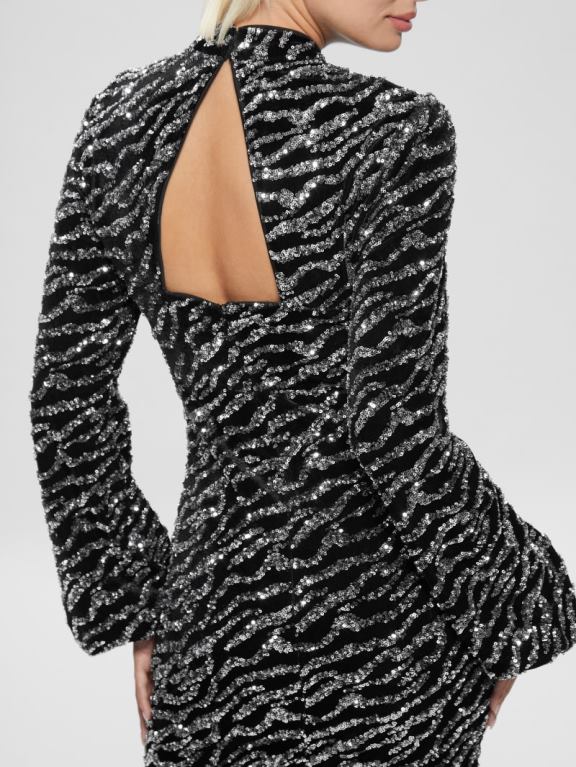 GUESS γυναίκες φόρεμα με παγιέτες zoe ασημί πολυ ενδύματα J46DJ727
