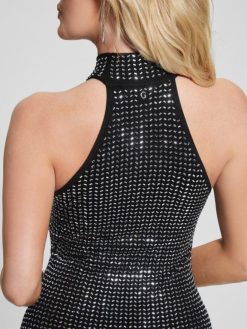 GUESS γυναίκες φόρεμα με πουλόβερ σελέστε καθρέφτη μαύρος ενδύματα J46DJ479