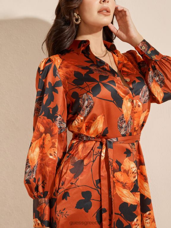 GUESS γυναίκες φόρεμα πουκάμισο με στάμπα φύλλα που πέφτουν ενδύματα J46DJ824