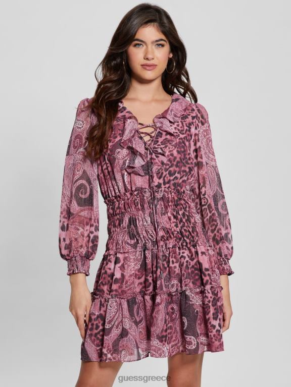 GUESS γυναίκες Φόρεμα eco lucy με κορδόνια μωβ κασμίρ στάμπα ενδύματα J46DJ327