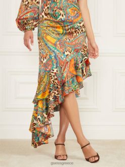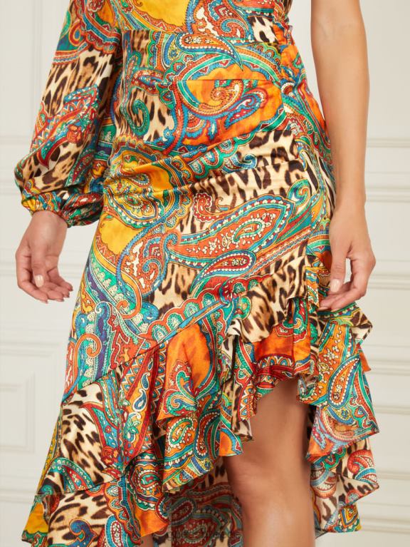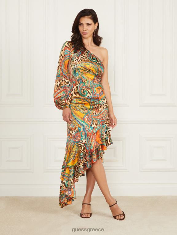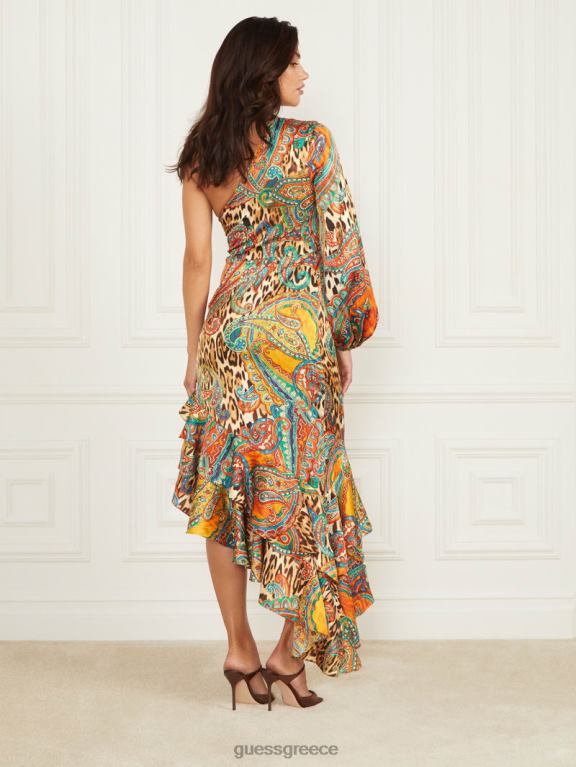 GUESS γυναίκες φόρεμα tricia βολάν φοίνικα ανερχόμενη εκτύπωση ενδύματα J46DJ697