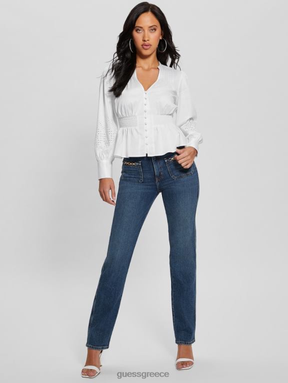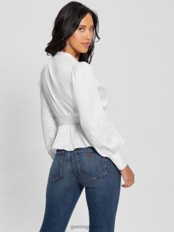 GUESS γυναίκες avery eyelet κεντημένο τοπ καθαρό λευκό ενδύματα J46DJ1042