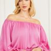 GUESS γυναίκες οικολογικό φόρεμα katerina off-the-shoulder καθαρό λευκό ενδύματα J46DJ454