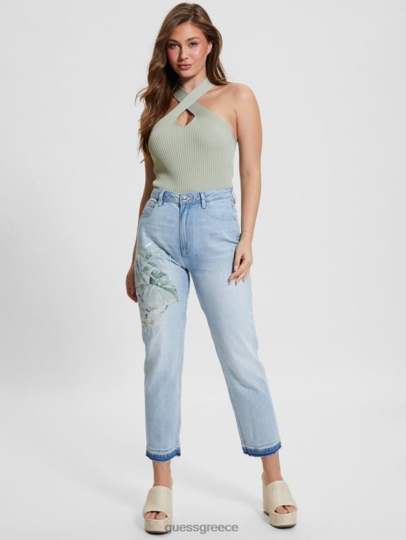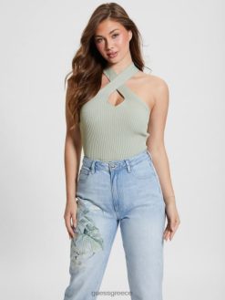 GUESS γυναίκες claire πουλόβερ halter crop top σκονισμένη φτέρη ενδύματα J46DJ929