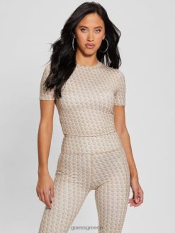GUESS γυναίκες crop top eco logomania μικρό gj καφέ ενδύματα J46DJ1135