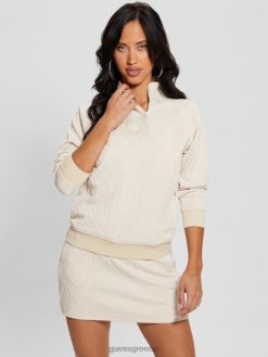 GUESS γυναίκες darla φούτερ ζακάρ με μισό φερμουάρ gj μπεζ ζακάρ ενδύματα J46DJ2459