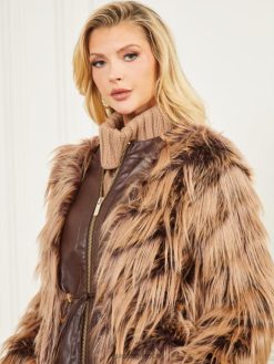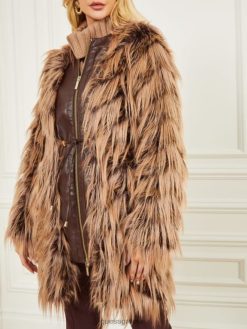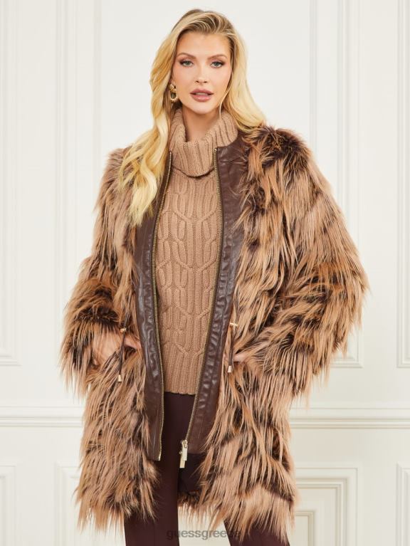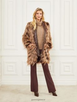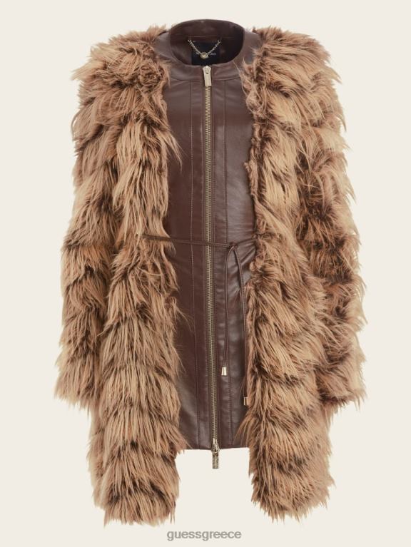 GUESS γυναίκες dinah shaggy παλτό σκούρο μπέρμπον με κλασικό ενδύματα J46DJ1977