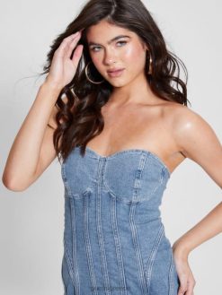 GUESS γυναίκες eco cecilia στράπλες τζιν φόρεμα ειρηνικό φως ενδύματα J46DJ3