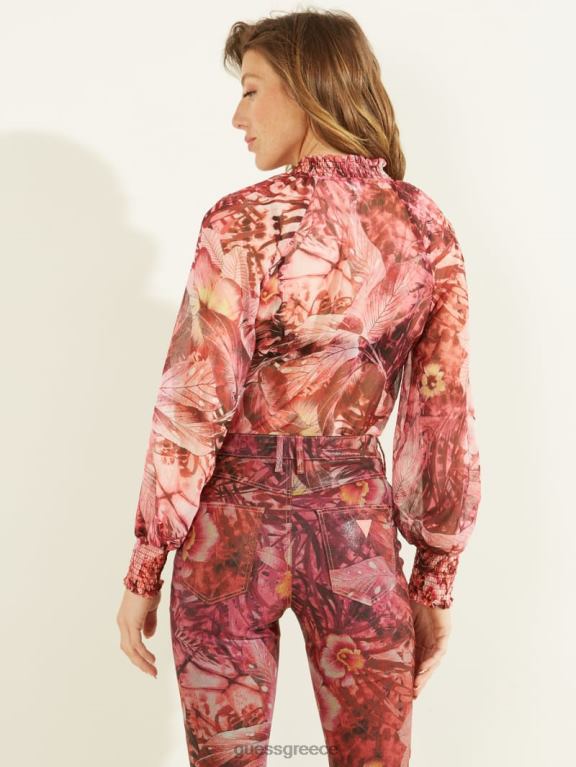 GUESS γυναίκες eco charley top Μπατίκ τροπικό στάμπα ροζ ενδύματα J46DJ1639