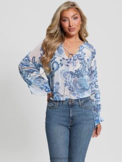 GUESS γυναίκες eco gilda διαφανής μακρυμάνικη μπλούζα μπλε συλλεκτικά ενδύματα J46DJ1052