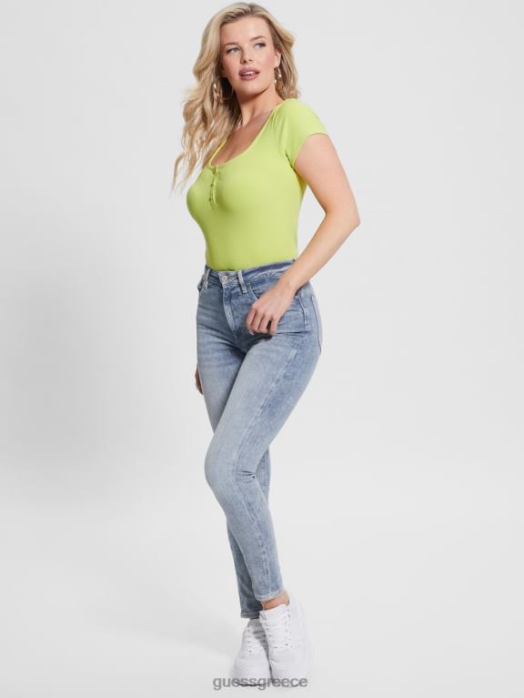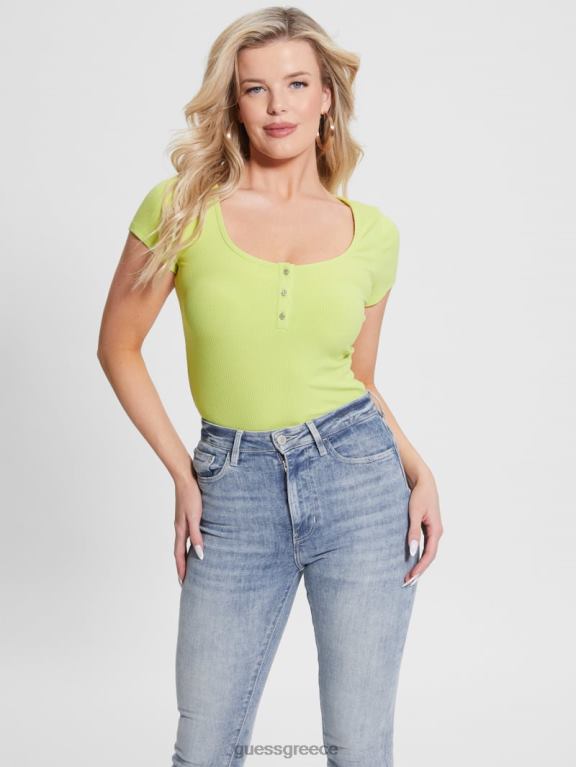 GUESS γυναίκες eco karlee henley μπλουζάκι σκονισμένο ακτινίδιο ενδύματα J46DJ1140
