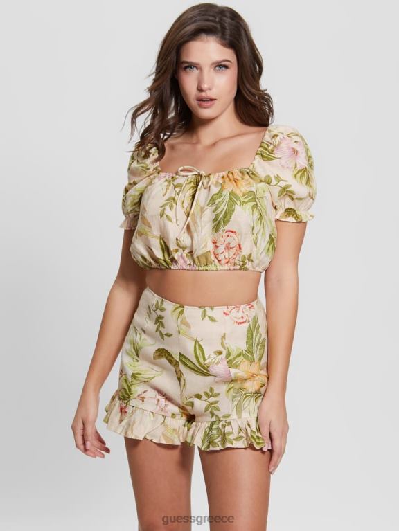 GUESS γυναίκες eco mayara λινό cropped top κειμήλιο ιβίσκου ενδύματα J46DJ1568