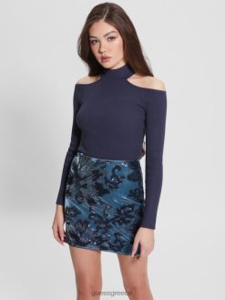 GUESS γυναίκες eco milly φορμάκι με κρύο ώμο μαυρισμένο μπλε multi ενδύματα J46DJ1522