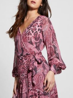 GUESS γυναίκες eco nuovo bahia wrap maxi φόρεμα μωβ κασμίρ στάμπα ενδύματα J46DJ326