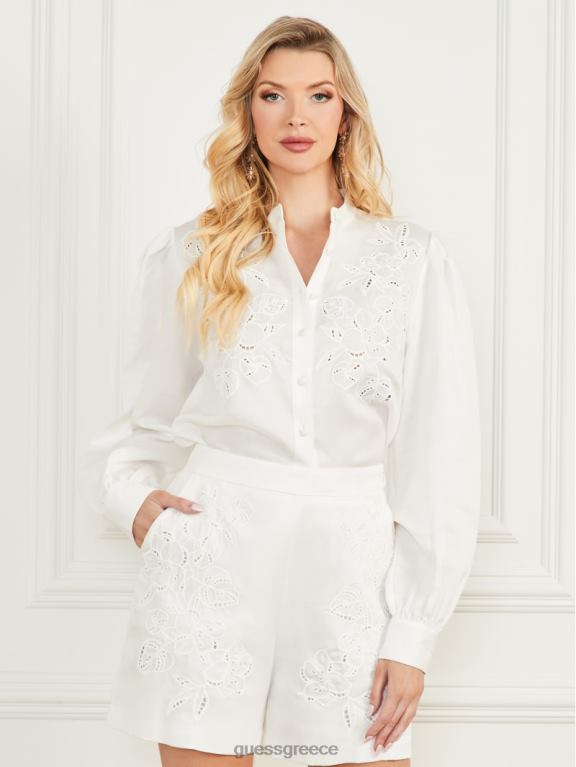 GUESS γυναίκες eco paradiso κεντημένη μπλούζα χλωμό μαργαριτάρι ενδύματα J46DJ1647