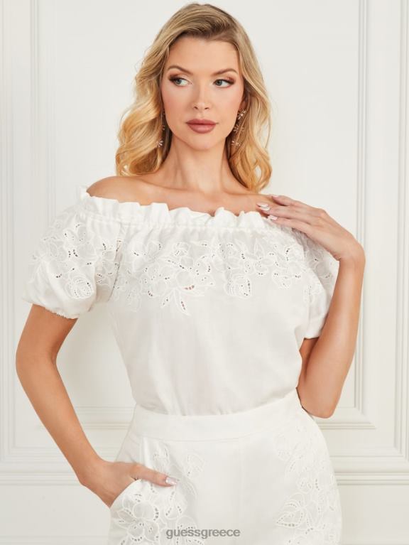 GUESS γυναίκες eco paradiso κεντημένο τοπ χλωμό μαργαριτάρι ενδύματα J46DJ1566