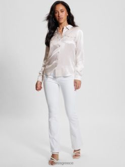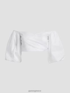 GUESS γυναίκες Jun μπλούζα με φουσκωτά μανίκια καθαρό λευκό ενδύματα J46DJ1048