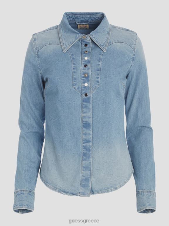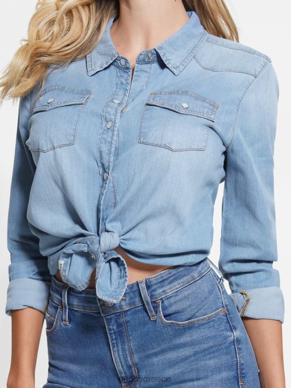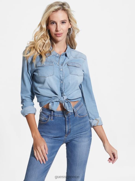 GUESS γυναίκες eco riley τζιν πουκάμισο μεσαίου τόνου μπλε ενδύματα J46DJ193