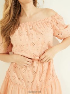 GUESS γυναίκες eden φόρεμα που βγαίνει από τους ώμους ροδακινί αφής πολυ ενδύματα J46DJ916