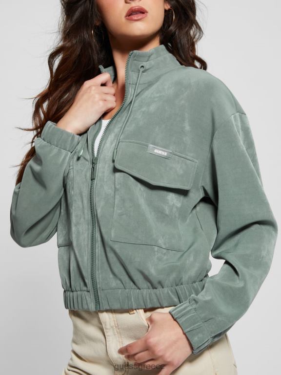 GUESS γυναίκες Euphemia cargo πουλόβερ με φερμουάρ γαλαζοπράσινα βέρδινα ενδύματα J46DJ2462