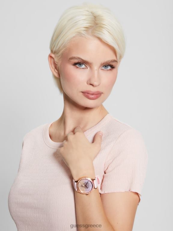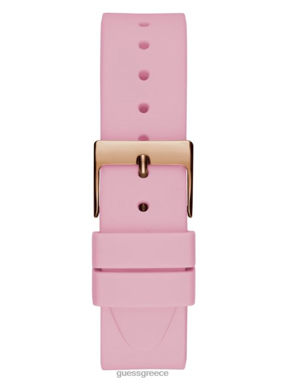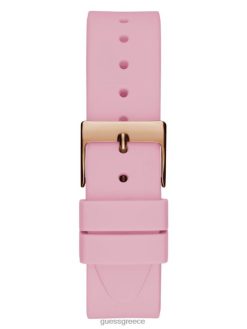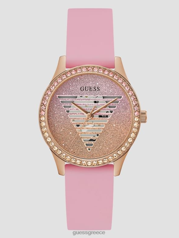 GUESS γυναίκες glitter διαφανές λογότυπο αναλογικό ρολόι σιλικόνης ροζ χρυσός αξεσουάρ J46DJ3636