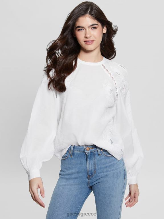 GUESS γυναίκες iba κεντημένο τοπ καθαρό λευκό ενδύματα J46DJ1317