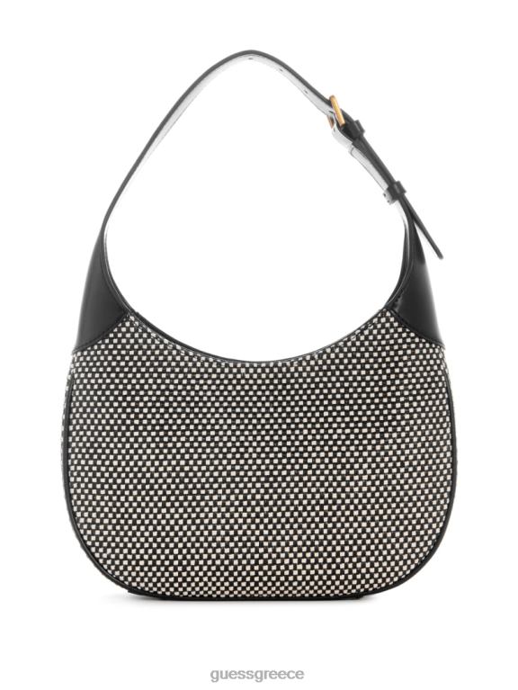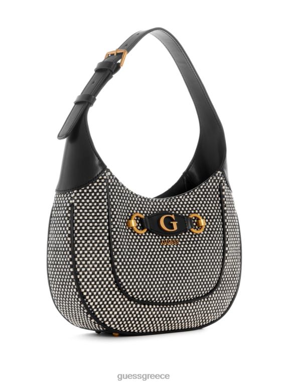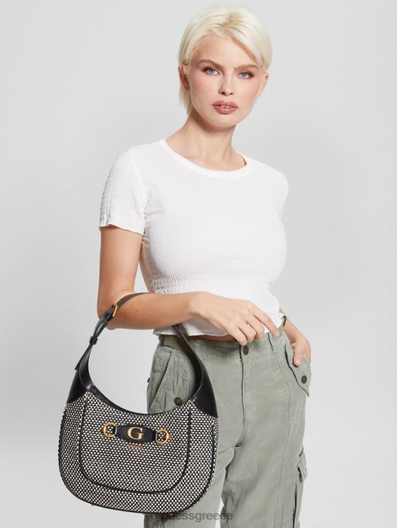 GUESS γυναίκες izzy raffia hobo bag μαύρο γυαλιστερό νικέλιο σακούλες J46DJ3044