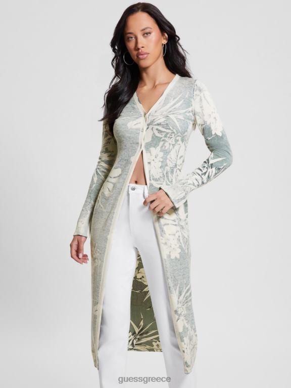 GUESS γυναίκες odette μακριά ζακέτα στάμπα ζούγκλας με σκονισμένη φτέρη ενδύματα J46DJ1747