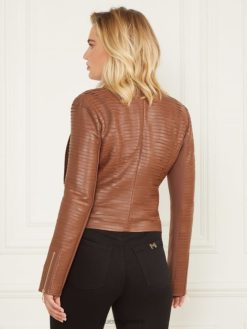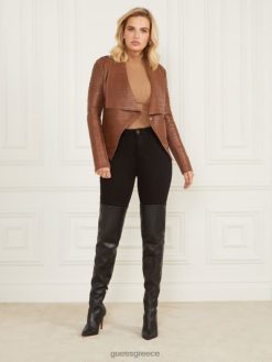 GUESS γυναίκες shayna drape δερμάτινο μπουφάν καστανή ομορφιά ενδύματα J46DJ1825