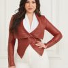 GUESS γυναίκες shayna drape δερμάτινο μπουφάν σχιστόλιθος γκρι ενδύματα J46DJ1916