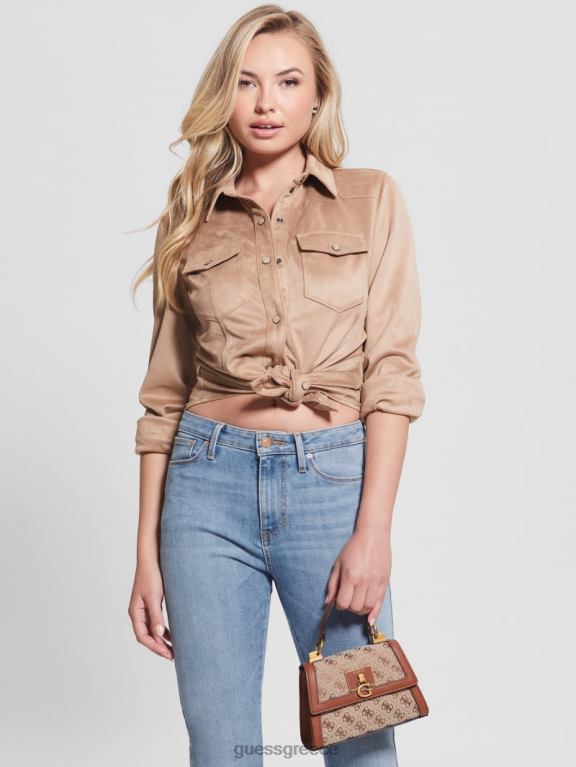 GUESS γυναίκες Stephi jacquard logo mini τσάντα καφέ σακούλες J46DJ2781