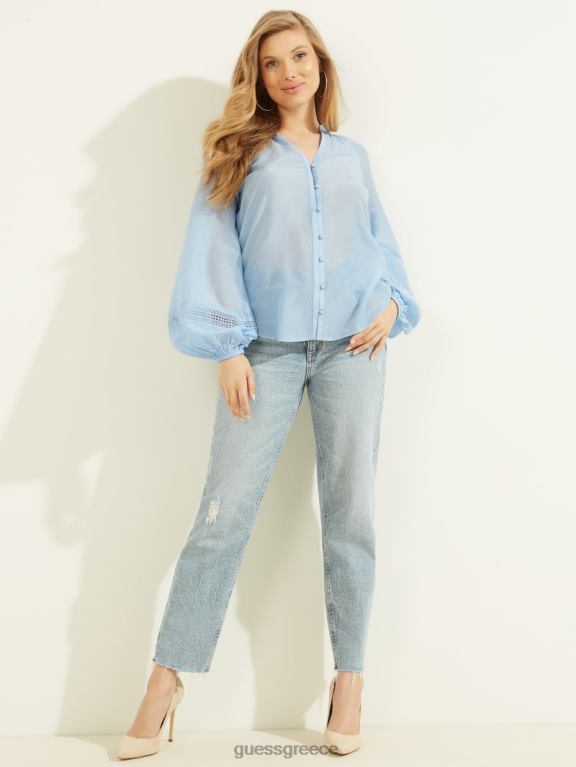 GUESS γυναίκες τζιν πουκάμισο με μάτι λουλούδι απαλό μπλε ενδύματα J46DJ232