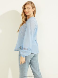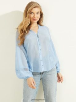 GUESS γυναίκες top ryan voile καταφύγιο μπλε πολυ ενδύματα J46DJ1559
