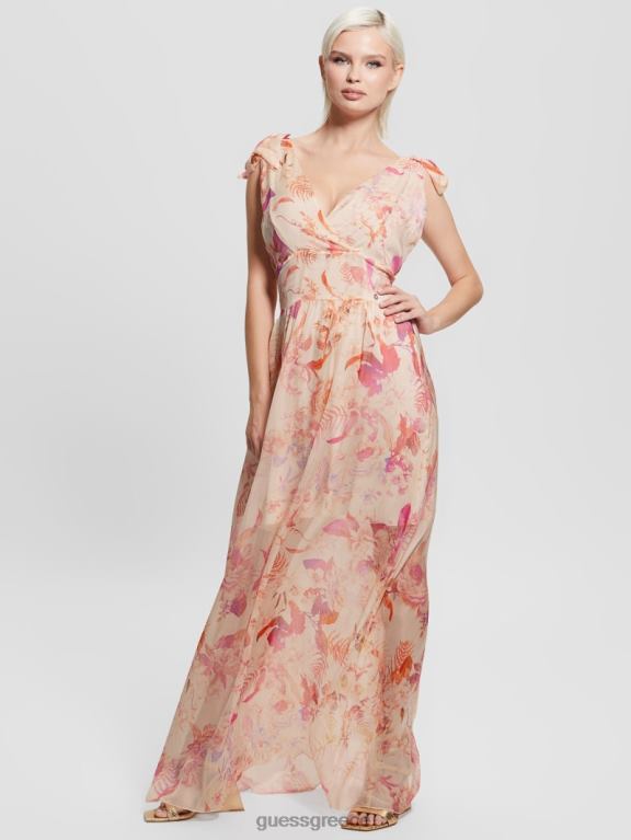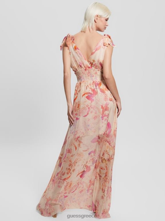GUESS γυναίκες Venus smocked maxi φόρεμα ανακτημένος ρομαντισμός ενδύματα J46DJ602