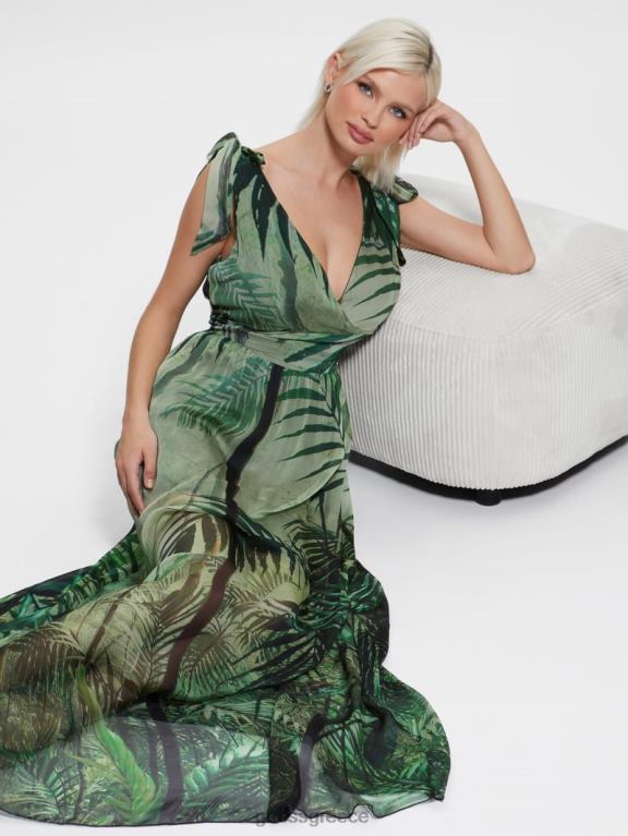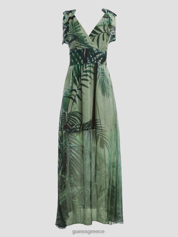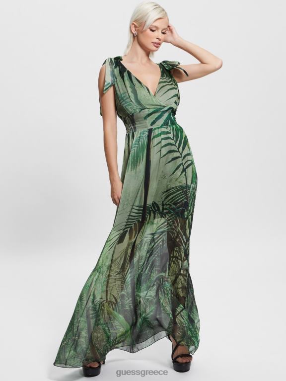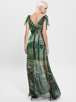 GUESS γυναίκες Venus smocked maxi φόρεμα τροπικό δάσος ενδύματα J46DJ607