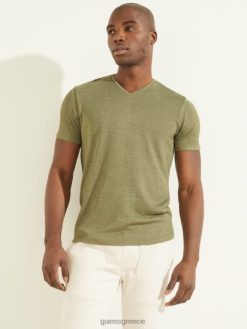 GUESS άνδρες μπλουζάκι με λαιμόκοψη γάζας σκονισμένη ελιά ενδύματα J46DJ4104