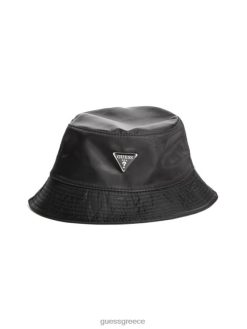 GUESS γυναίκες έμβλημα λογότυπου νάιλον καπέλο κουβά μαύρο δέρμα φιδιού αξεσουάρ J46DJ3798