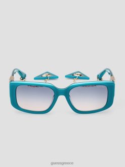 GUESS γυναίκες τετράγωνα πλαστικά γυαλιά ηλίου έμβλημα τριγώνου νέον πορτοκαλί αξεσουάρ J46DJ3708