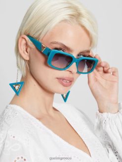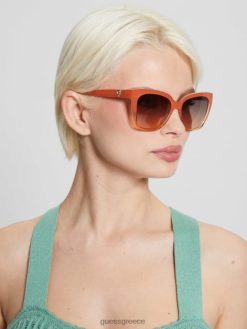 GUESS γυναίκες τετράγωνα πλαστικά γυαλιά ηλίου έμβλημα τριγώνου νέον πορτοκαλί αξεσουάρ J46DJ3708