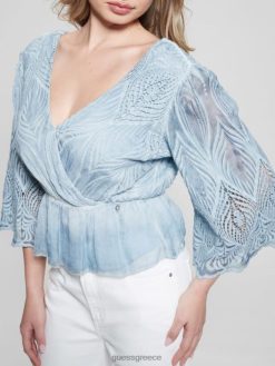 GUESS γυναίκες κροπ μπλουζάκι mock λαιμόκοψης ντάλια χαμηλών τόνων ροζ lurex ενδύματα J46DJ1104