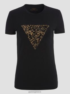 GUESS γυναίκες μπλουζάκι με λογότυπο lidia μαύρος ενδύματα J46DJ1442