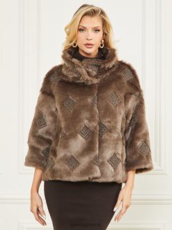 GUESS γυναίκες σακάκι gwenda από ψεύτικη γούνα μπλε βερμούδα με πιο σκούρο ενδύματα J46DJ1832