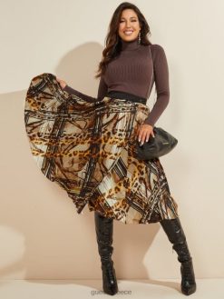 GUESS γυναίκες Λεοπάρ πλισέ φούστα λεοπάρ γραμμές ενδύματα J46DJ2321