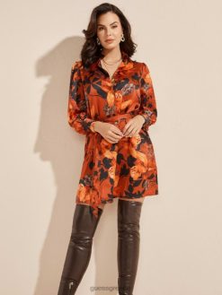 GUESS γυναίκες φόρεμα πουκάμισο με στάμπα φύλλα που πέφτουν ενδύματα J46DJ824