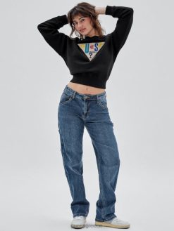 GUESS για άνδρες και γυναίκες αυθεντικά μακρυμάνικο μπλουζάκι στο λαιμό μαύρος ενδύματα J46DJ1304